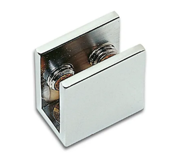 Support d’étagère chromé large pour vitrage de 6 à 8mm.