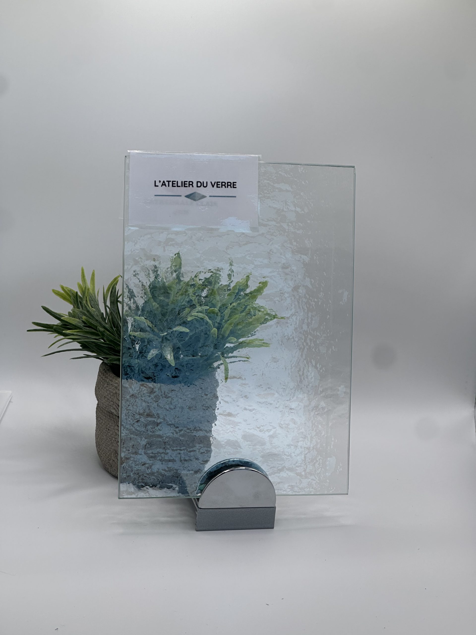 Le vitrage Cathédrale 4 mm est un verre imprimé décoratif à texture martelée, offrant un subtil relief évoquant des formes arrondies qui brisent les contours sans les rendre opaques.