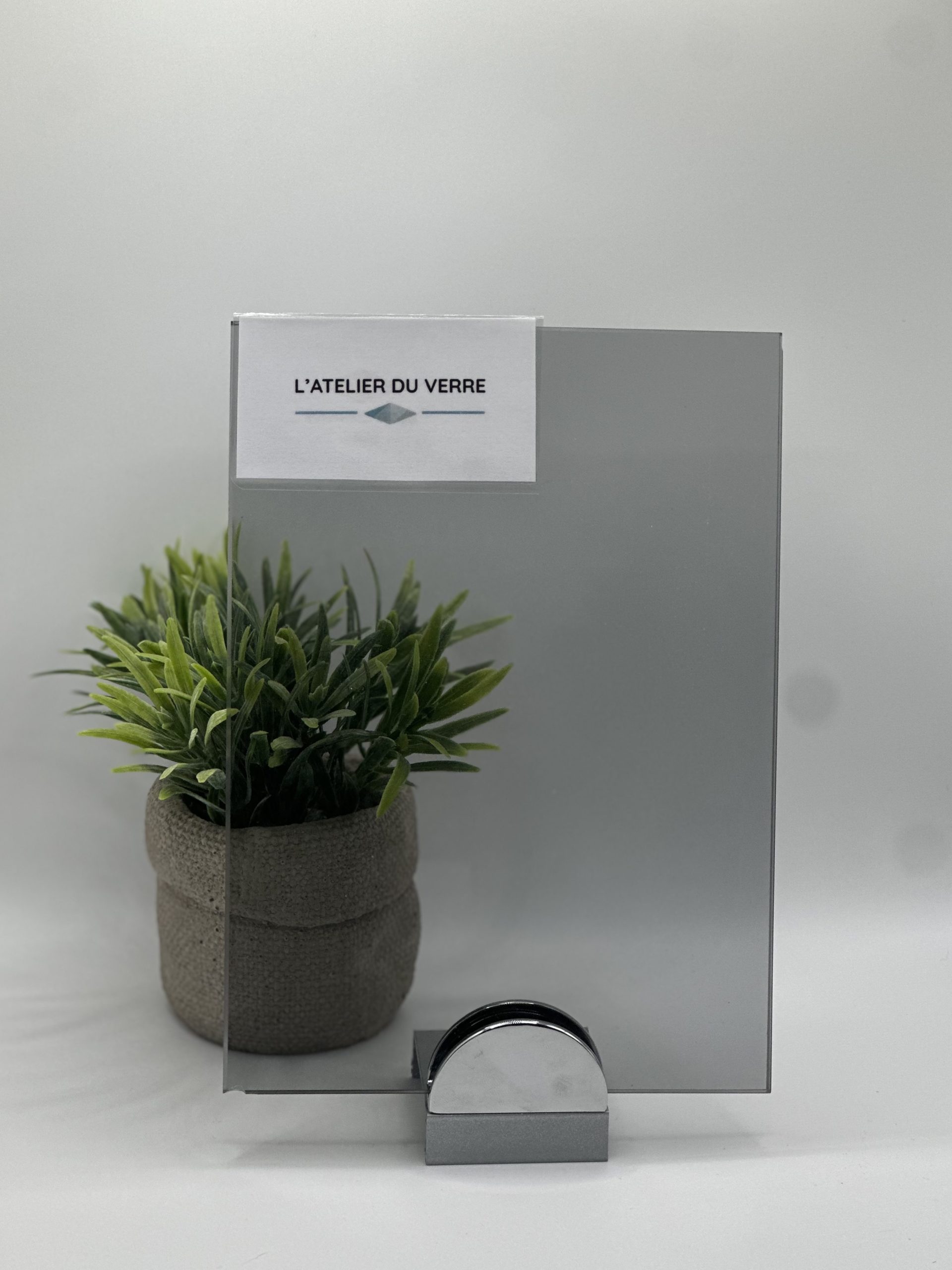 Dans sa version Grise, le verre présente une teinte encore plus soutenue et peut, en fonction de l’éclairage, être utilisé comme un miroir espion permettant de voir sans être vu. De plus, il offre l’avantage de masquer les éventuelles imperfections lorsqu’il est utilisé en revêtement mural ou en mobilier.