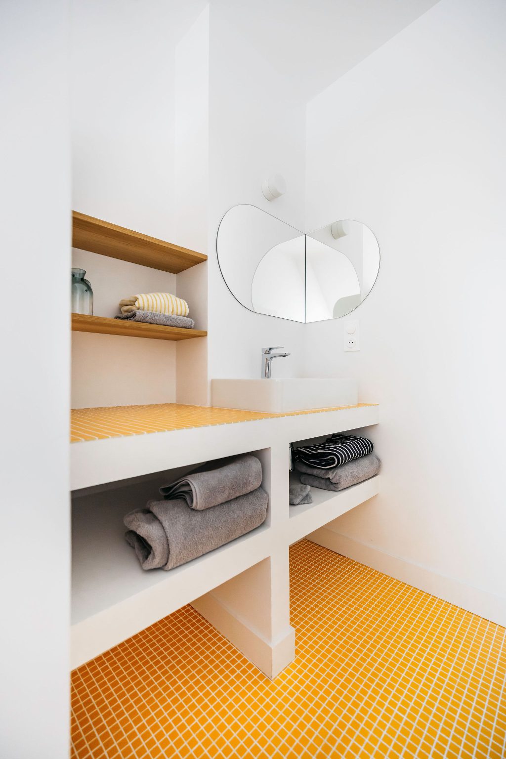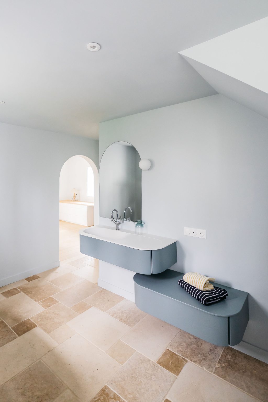 Réalisation d’un miroir « arche » design sur-mesure pour la salle de bain de l’un de nos clients. Il se distingue par sa finition épurée qui met en valeur la pureté de sa forme. Ses bords polis offrent une finition soigneuse et qualitative, reflétant la lumière avec subtilité.